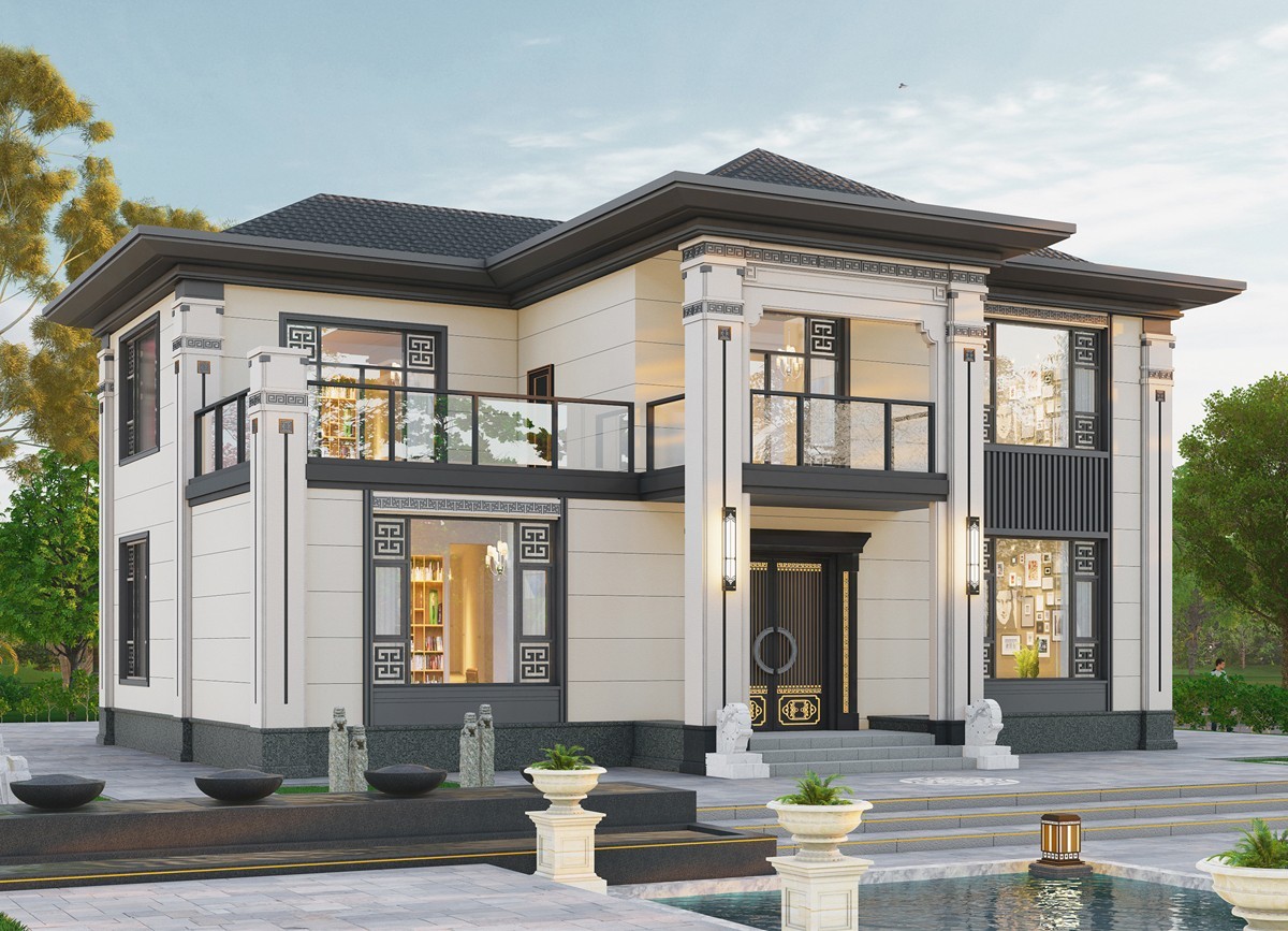 游仙005 两层新中式(11.36x11.76米)-【易设计】